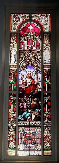 At left the “Resurrection Window” depicts Jesus’ Easter Morning victory over the grave.